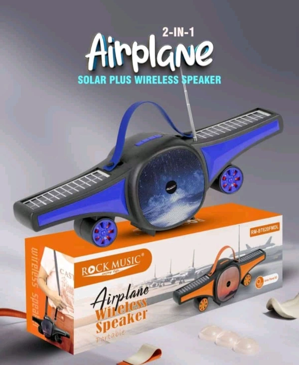 CLUBCLASSY CLUBCLASSY Rock Music Airplane Design Bluetooth Wireless Speaker with Solar Panel FM Radio