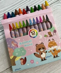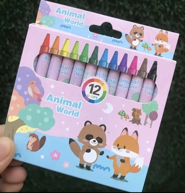Animal World Theme Wax Crayons Set for Kids – 12 Shades (Multicolor)