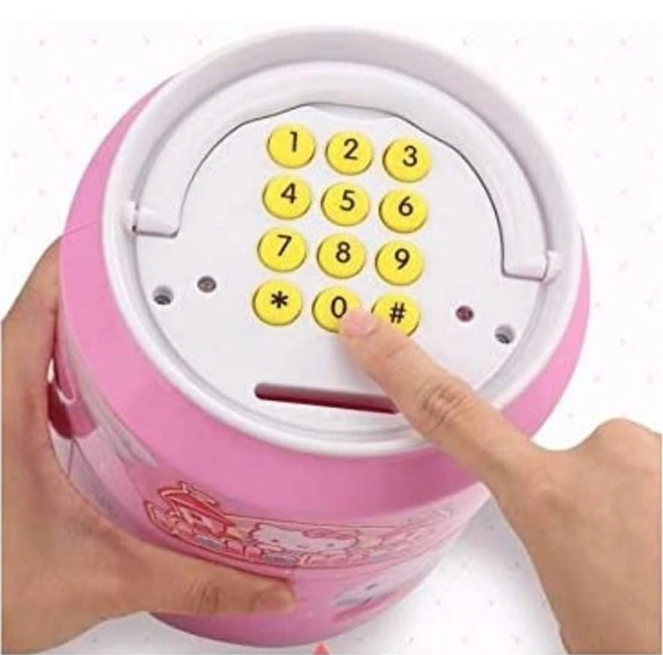 Battery Operated Cylinder ATM Safe Kids Piggy Saving ATM Bank with Electronic Lock Coin Bank Cash Deposit ATM Cartoon for Kids Coin Bank