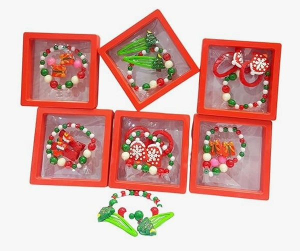 Nuts N Spices Christmas Holiday Girls Beaded Bracelet and Hair Accessories Gift Set
