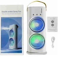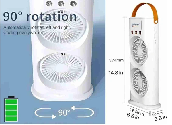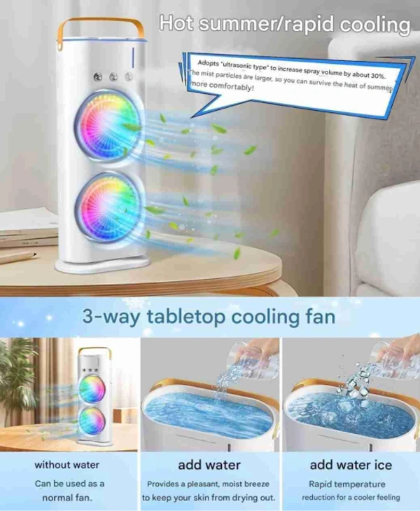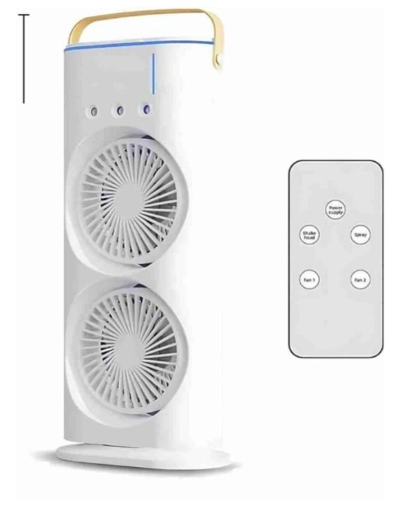 Portable Double Headed Mini Air Cooler For Home & Office Spray Cooling With Mist Humidifier 3 Gear USB Rechargable Oacillating Fan With LED Light Cooler Fan, Touch & Remote Control Ice Filling