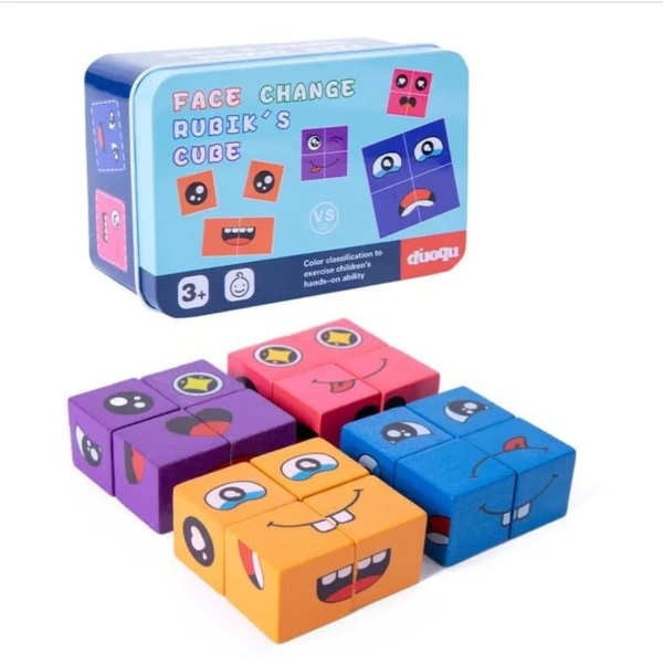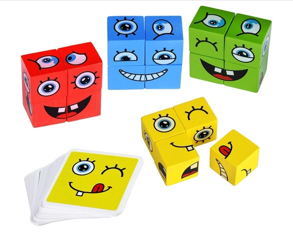 Unleash Creativity and Fun with the Wooden Emoji Face Changing Cube Puzzle Game!