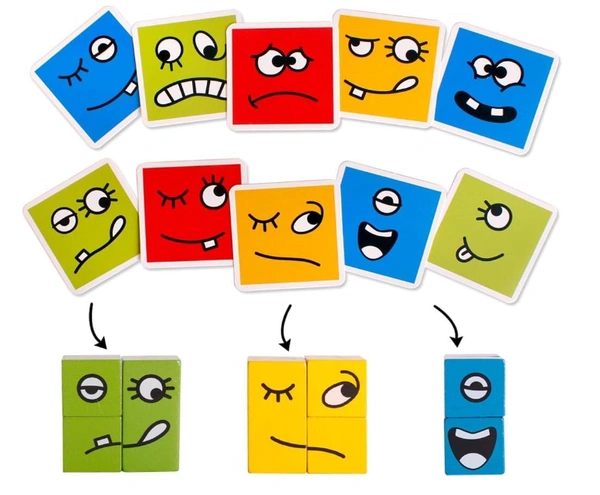 - 16 Durable Wooden Face Blocks: High-quality wooden blocks with vibrant emoji expressions that kids can mix and match to create endless fun combinations.