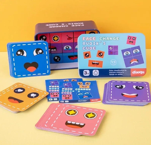 - 72 Playing Cards: Challenge young minds to solve puzzles by matching the face blocks to the expressions on the cards, improving their observation and problem-solving skills.