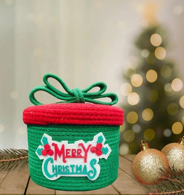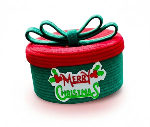 Merry Christmas Gift Basket Multipurpose Cute Cotton Rope Basket for Desk Bedside Table Red & Green | Storage Organizer | Xmas Hamper