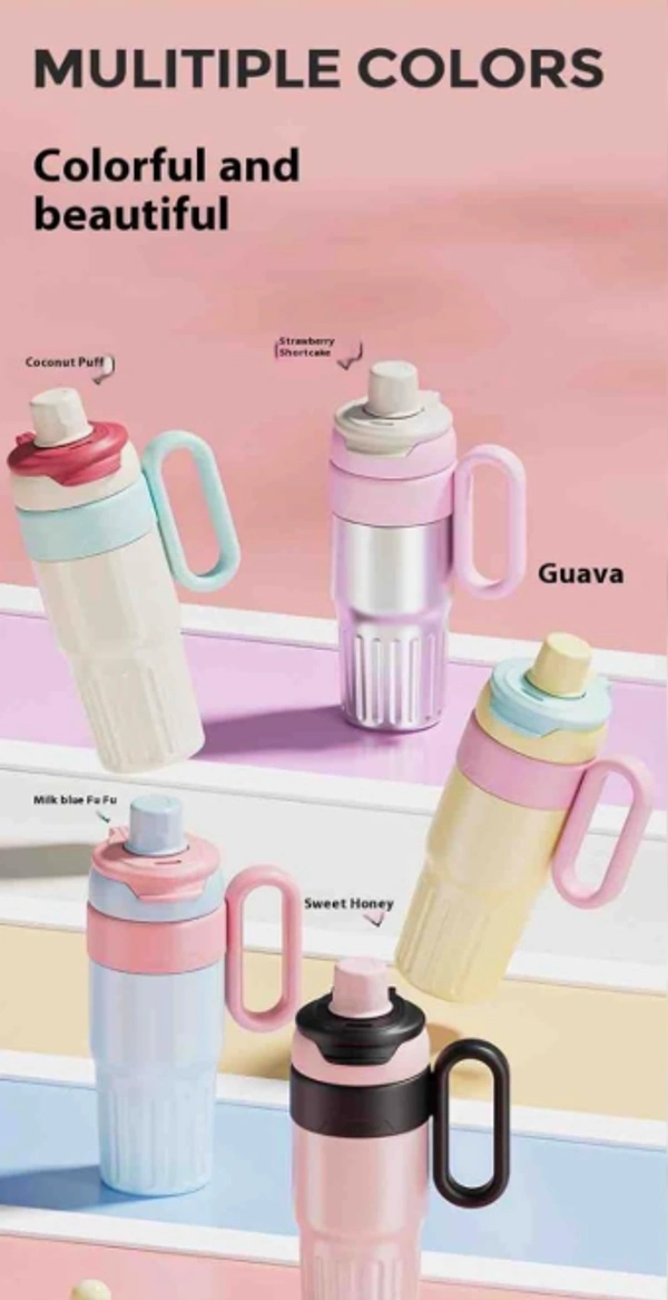 750ml Insulated Water Bottle - Hot & Cold Double Wall Tumbler with Handle, Straw & Spout Lid for Gym, Office, Travel