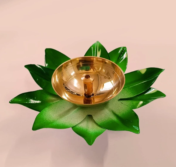 Lotus Brass Diya for Pooja – Hand-Painted Metal Oil Lamp for Diwali, Home Temple, Festival Decoration