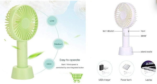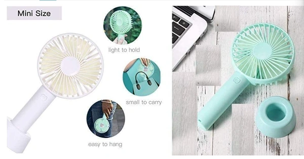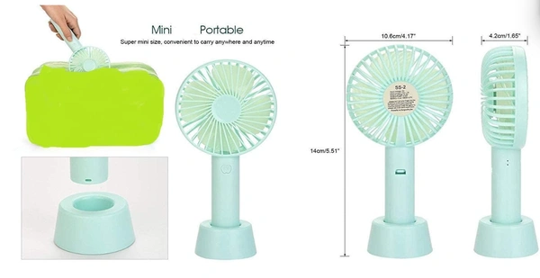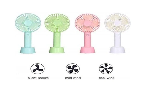Mini Portable USB Fan Built-in Rechargeable Battery Operated Summer Cooling Table Fan with Standing Holder Handy Base (Multicolor, Set of 1 x fan, USB Charger Cable, Fan Stand)