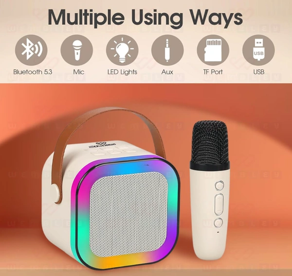 Wembley Karaoke Machine for Kids Adults, Mini Portable Blue-Tooth Karaoke Speaker with Wireless Microphone and Dynamic Lights Birthday Gift Home KTV Outdoor Travel