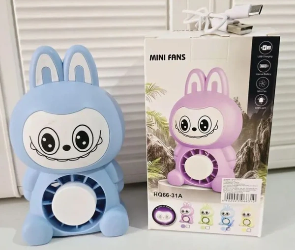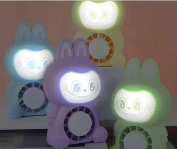 Labubu electric fan with night lamp | Mini Cartoon Rechargeable Desk Fan | Design with LED, USB Powered, Multicolor for Kids