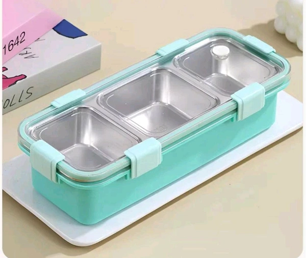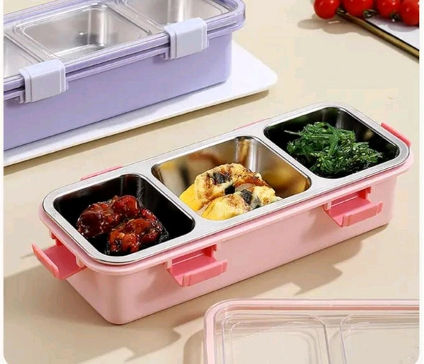3 Compartment Stainless Steel Snack & Meal Box – 650ml– BPA-Free & Leak-Proof – Durable Clip Lock Design – Ideal for School, Office & Travel – Food Storage Container for Fresh