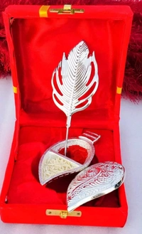 Crafted with care and attention to detail, this decorative piece is ideal for storing the sacred Roli and Chawal used in traditional practices. The conch shell-inspired design adds a touch of sophistication, while the accompanying Tilak stick ensures you have everything you need for seamless pooja preparations.