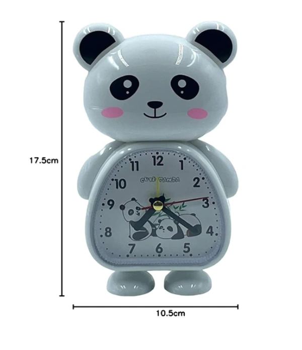 Plastic Cute Panda Cartoon Theme Teddy Bear Desk Alarm Analog Clock For Kids, Students (Multicolour, 17 X10 X 4Cm) (Panda (Black & White))