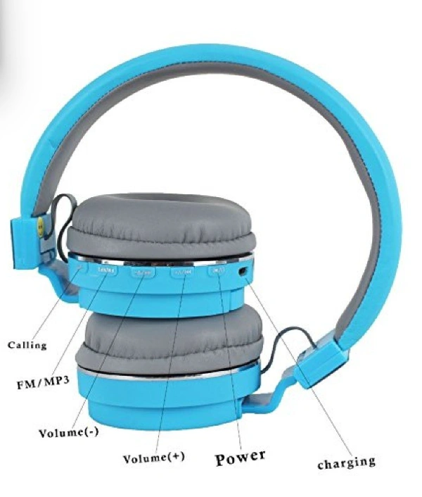 SH Wireless Bluetooth Headphones with Inbuilt Microphone and SD Card Slot Compatible with All Smartphone Phone (Blue)