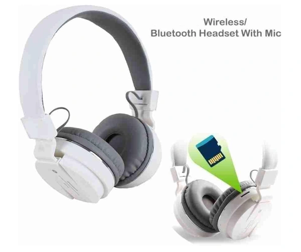 SH-12 Wireless Bluetooth Headphones, Over-Ear Design with Built-in Microphone and a Long Life Superior Sound Quality (White)