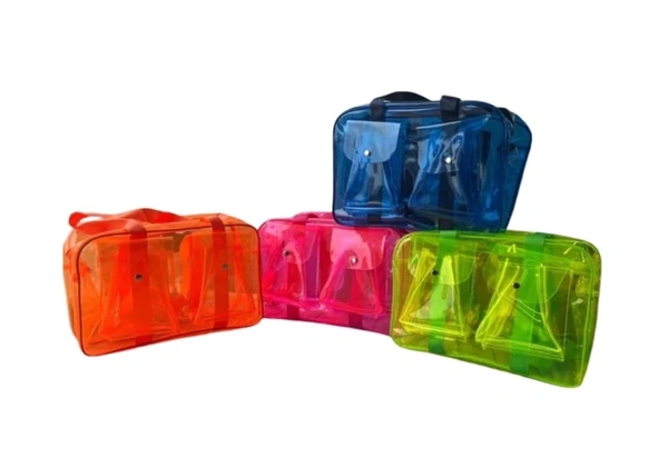 Transparent PVC Travel Bag Set – Waterproof, Multipurpose, Clear Tote Bags for Makeup, Beach, Office & School – Durable, Stylish & Lightweight Handbag with Shoulder Strap – Multicolor
