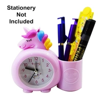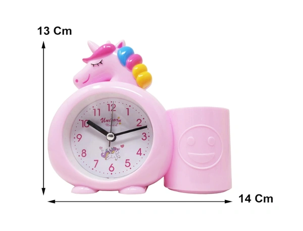 PARTEET Analog Alarm Clock with Pen Holder for Kids Bedroom Unicorn Alarm Watch for Girls Loud Bell Alarm Table Clock for Heavy Sleepers(Assorted Colour)(Plastic, 3.1Wx5.9Lx2.0H inches)