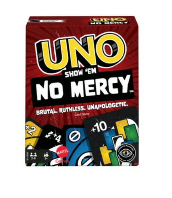 With its fast-paced gameplay and unpredictable twists, UNO NO MERCY is perfect for family gatherings, parties, or even a casual night in with friends. Whether you're a seasoned UNO player or a total newbie, this version will keep everyone engaged and on their toes!
