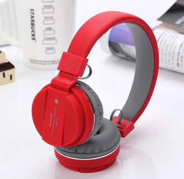 Wireless SH 12 Bluetooth Headphones with Mic Compatible with All Android and Smartphones (Red)