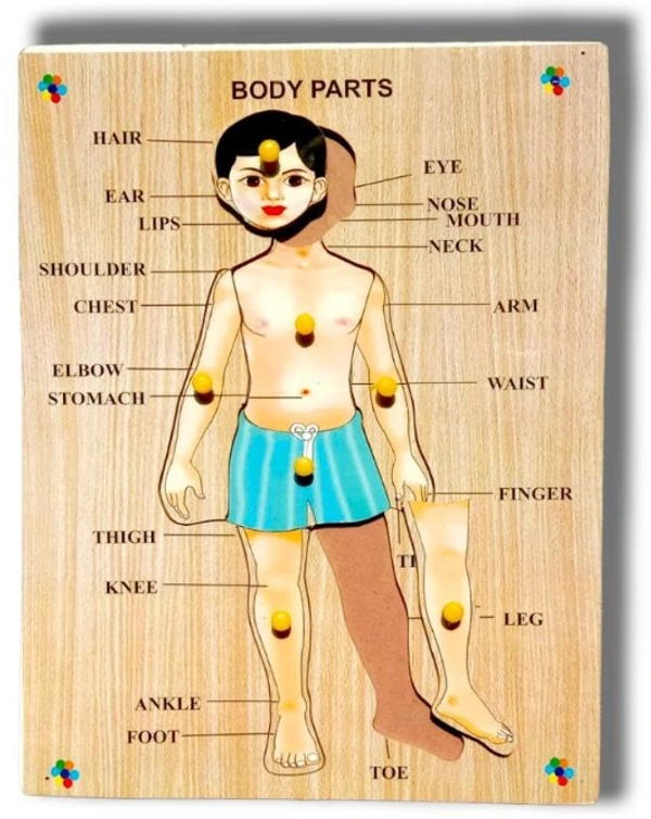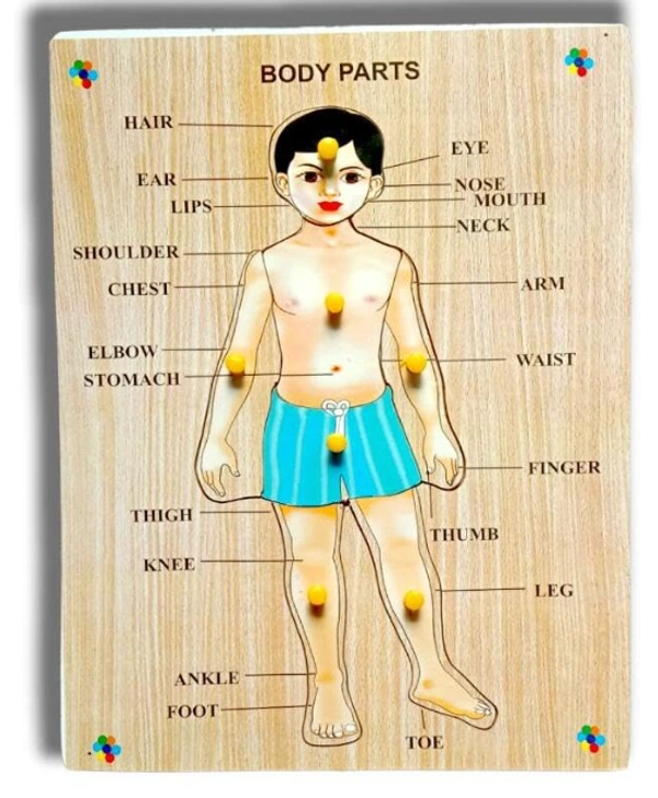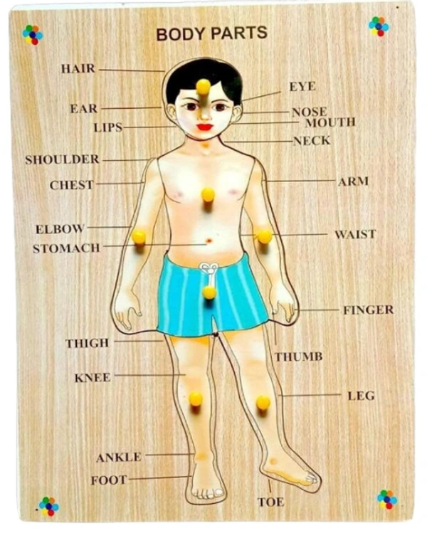 Wooden Human Body Parts Puzzle with Knobs, Learning Game for Kids (1 Pieces) (Multicolor)
